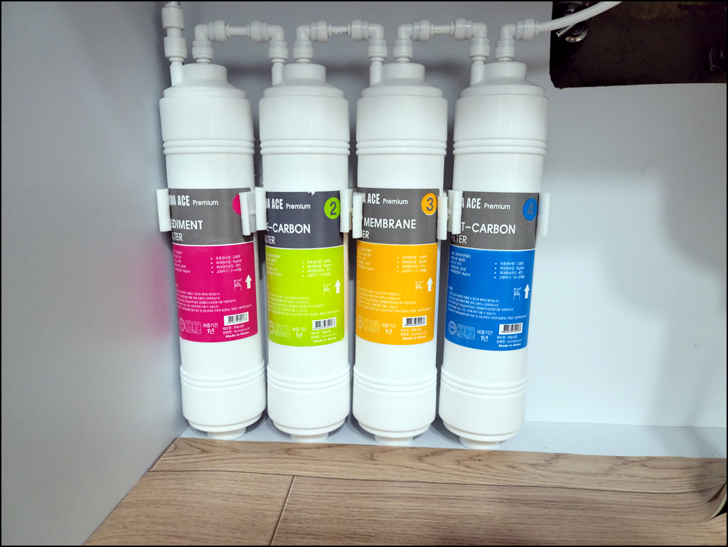필터(1년사용분), 피팅, 볼밸브, 아답터 및 수도꼭지, 홀커터 등 필요한 부자재 구입비용이 6만원 조금 더 들어간듯하다.