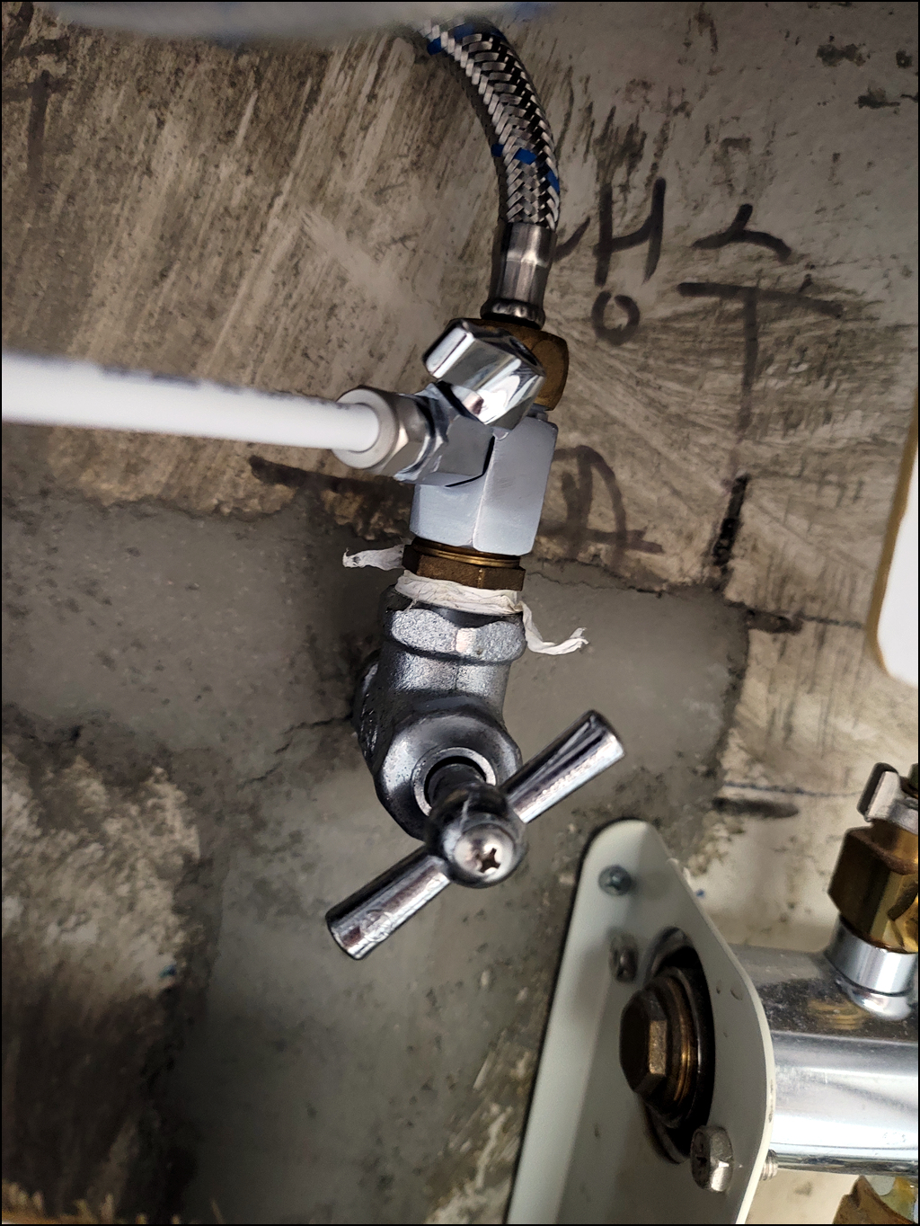 기존 앵글밸브 수도꼭지를 잠브고 아답터를 설치한다.