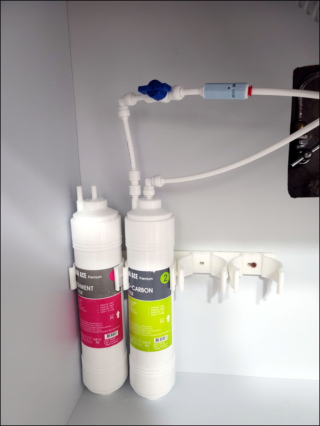 필터(1년사용분), 피팅, 볼밸브, 아답터 및 수도꼭지, 홀커터 등 필요한 부자재 구입비용이 6만원 조금 더 들어간듯하다.