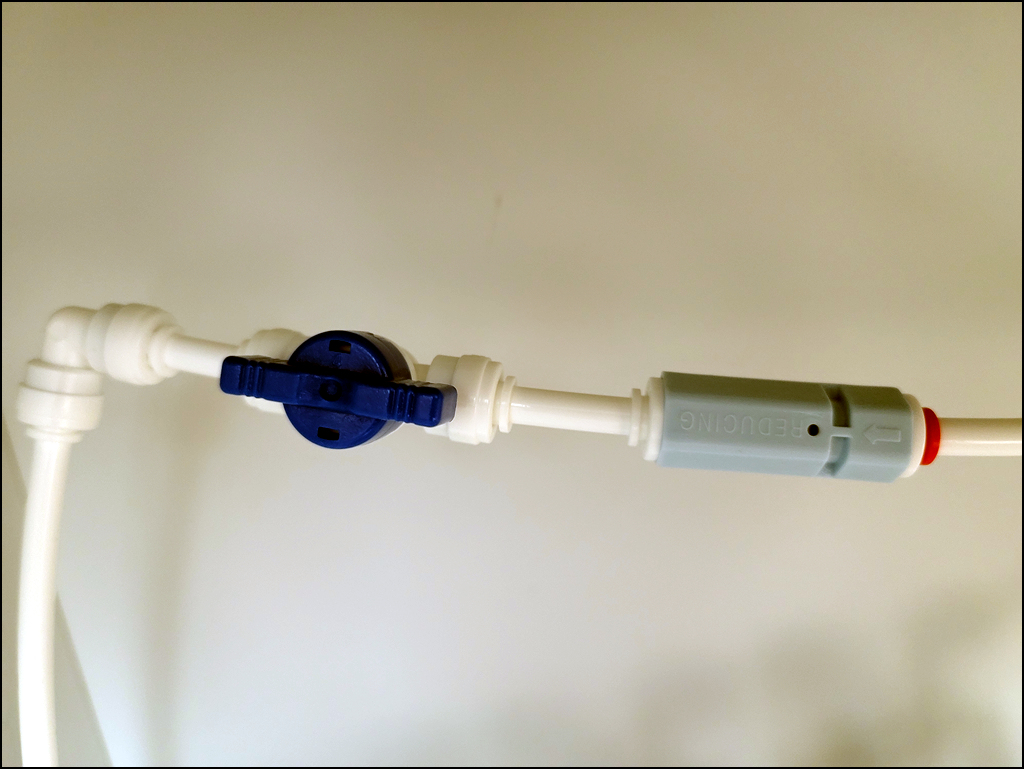 기존 싱크대 수전으로 올라가는 앵글밸브에 아답터를 연결한다.