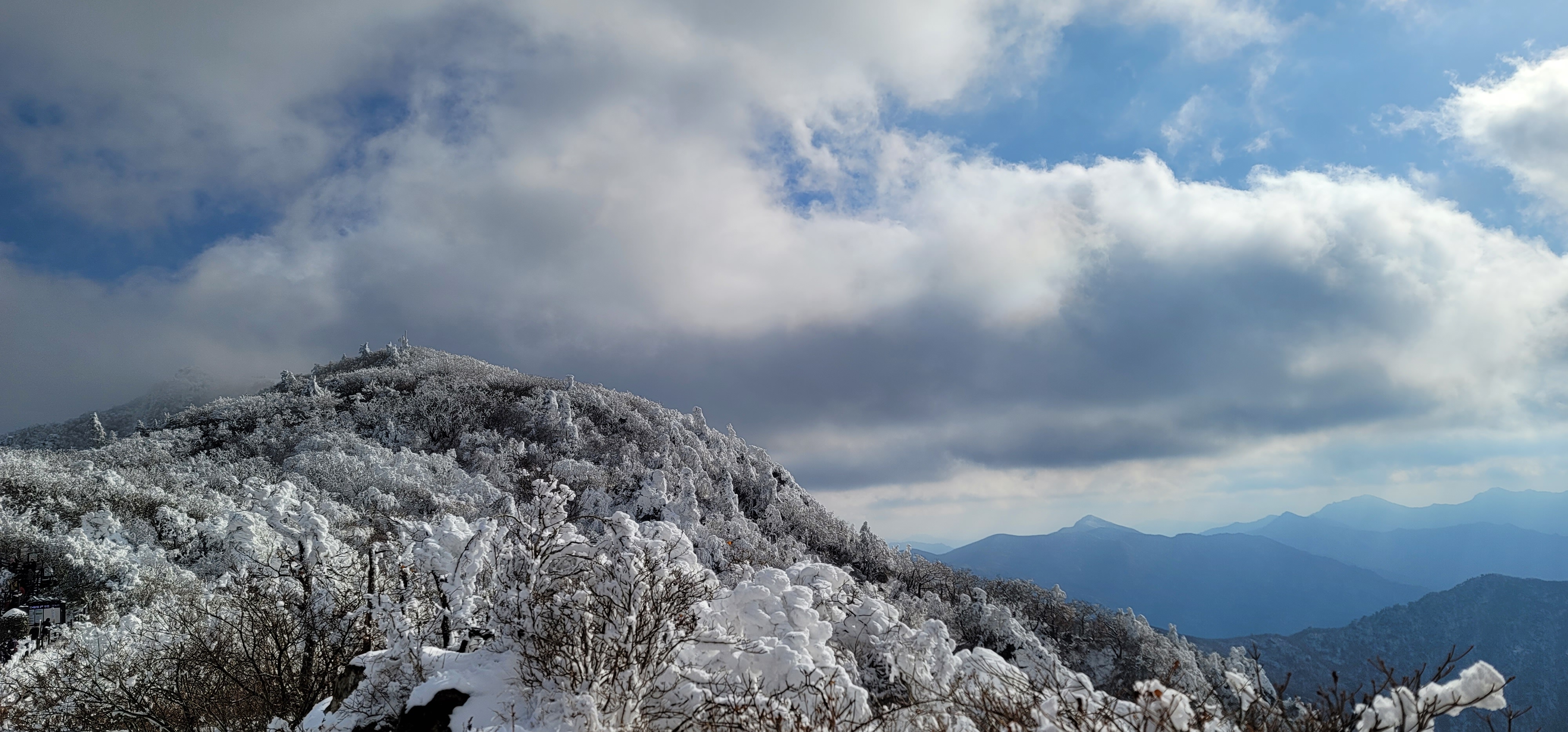 다행히 전날까지 눈이 조금 내려주고 그리 낮은 기온이 아님에도 불구하고 정상부근의 구름이