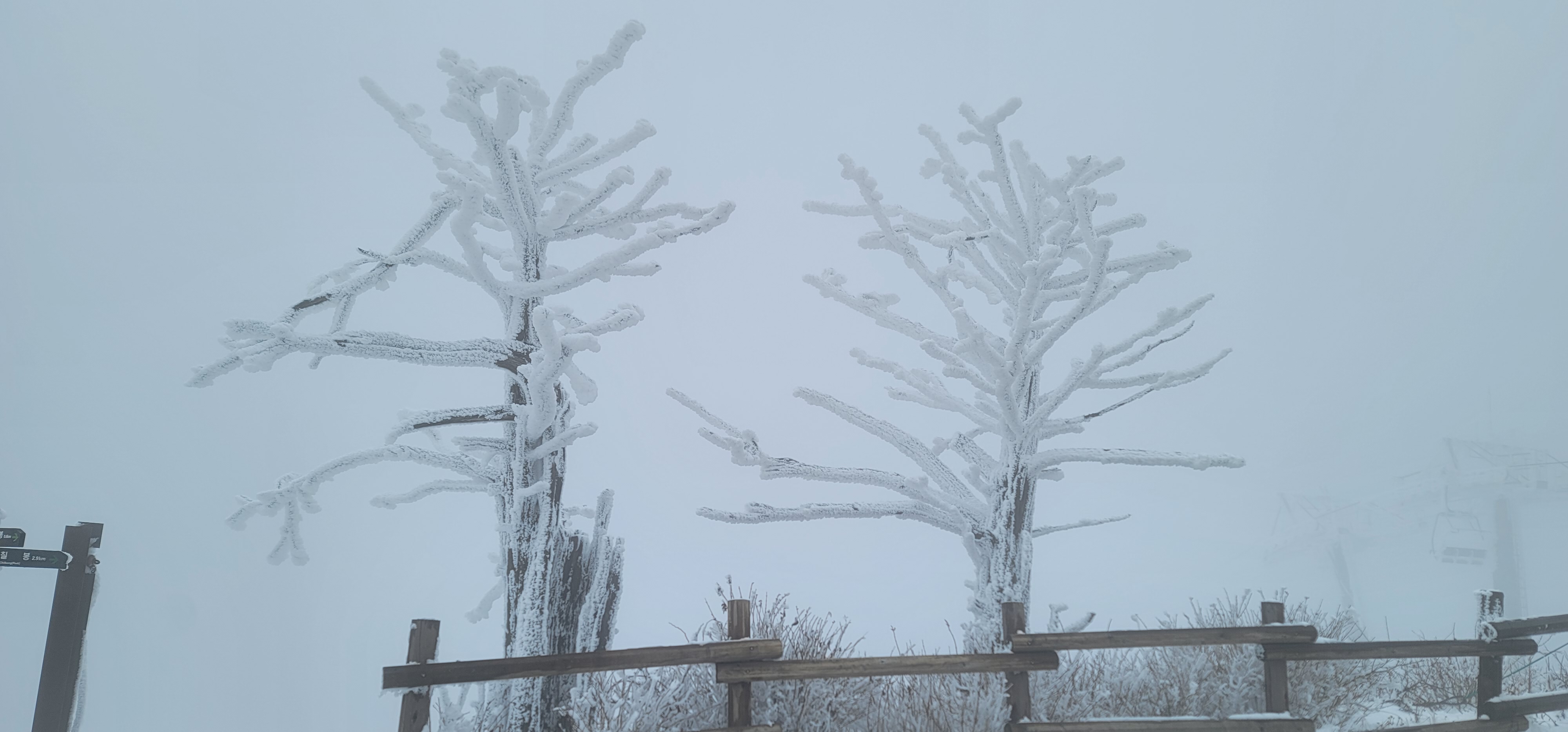 그래도 정상부근으로 올라갈수록 가시거리는 멀지 않지만 눈꽃을 구경하기에 무리가 없다.
