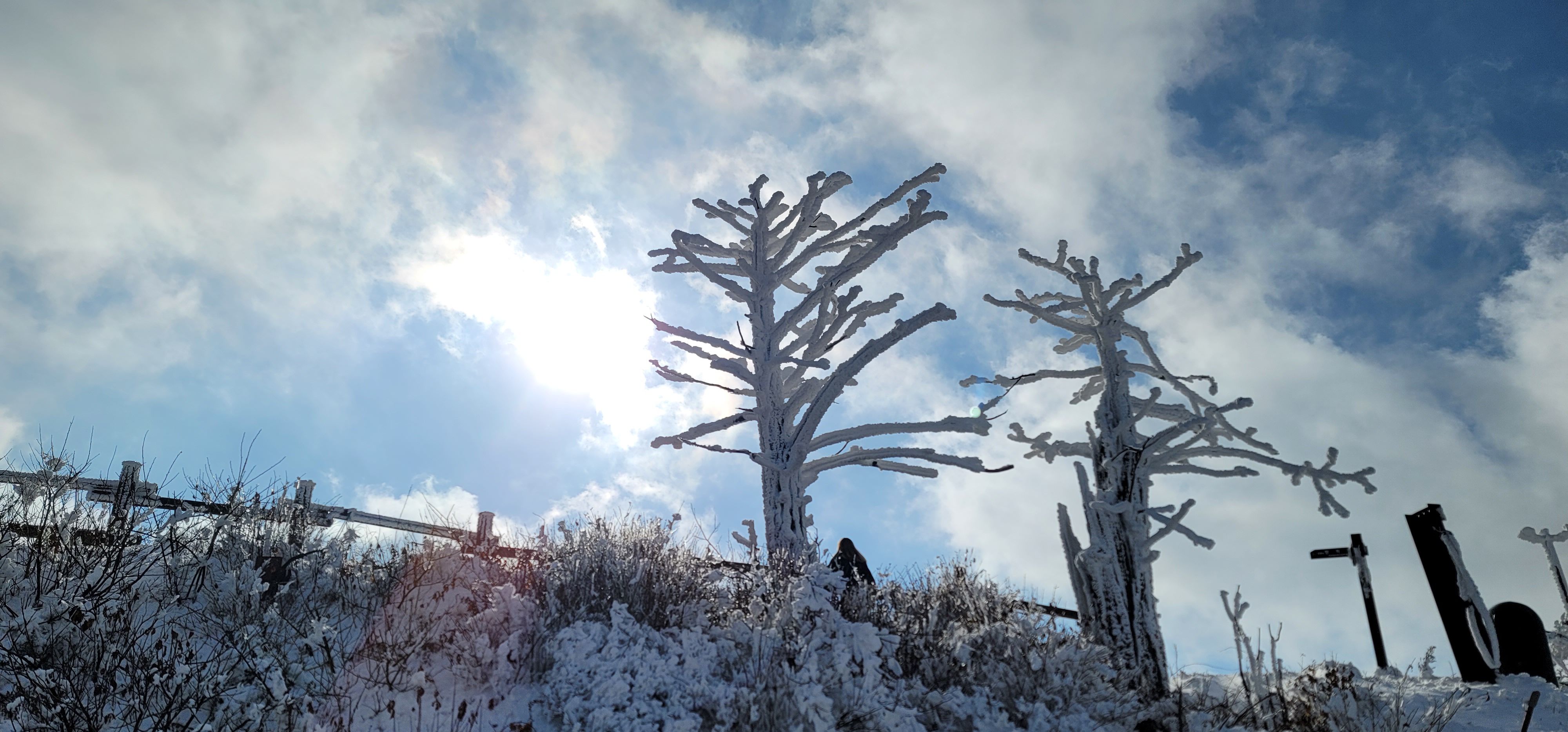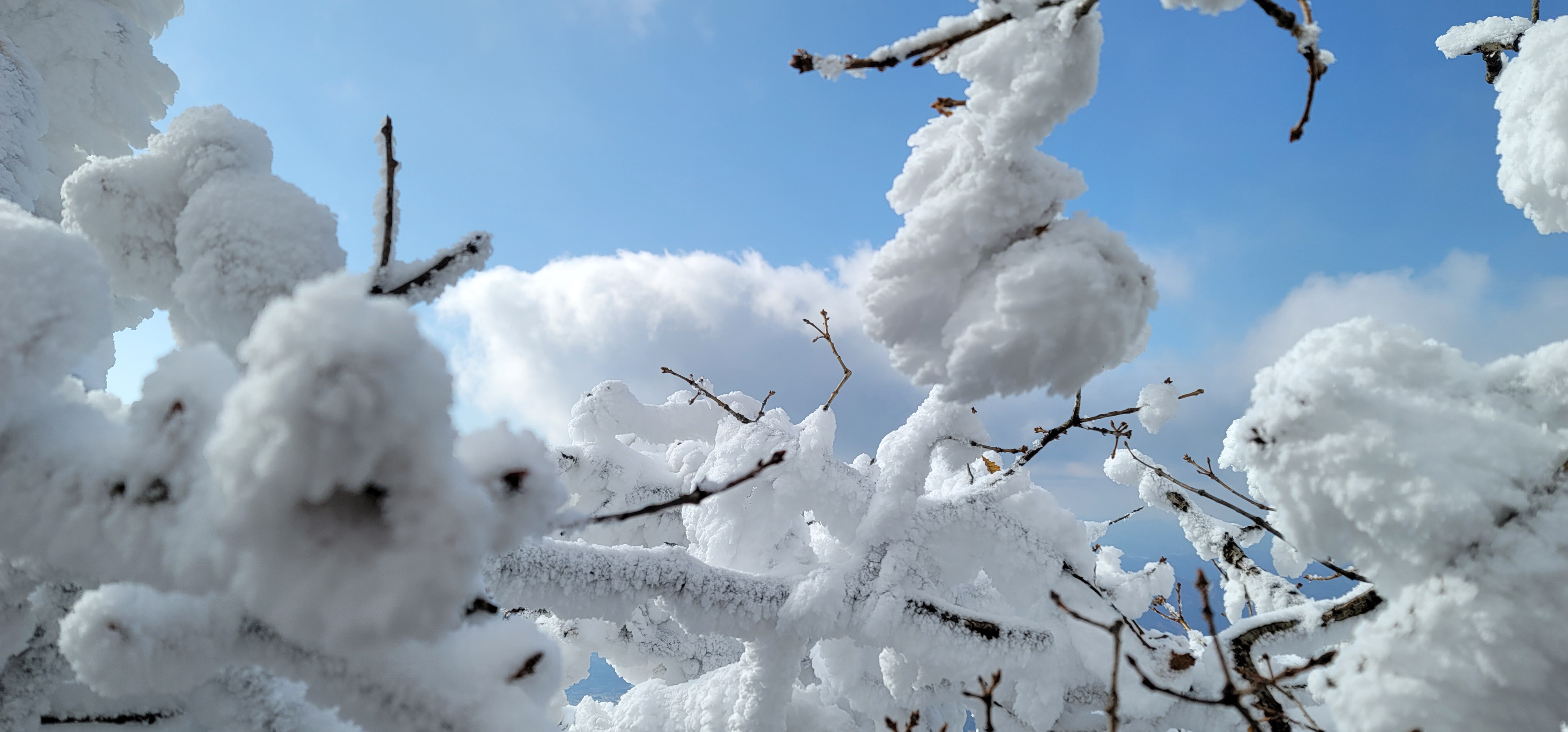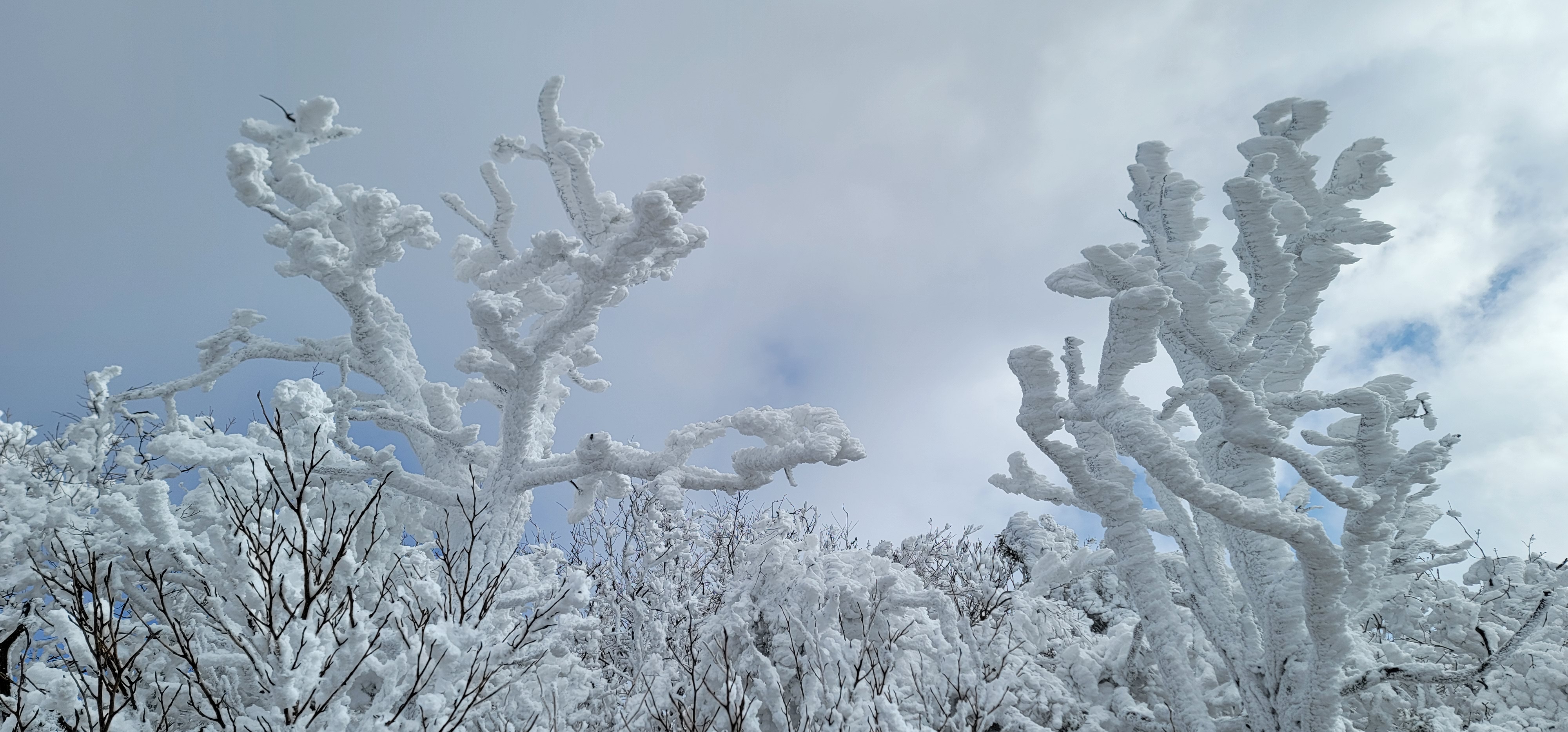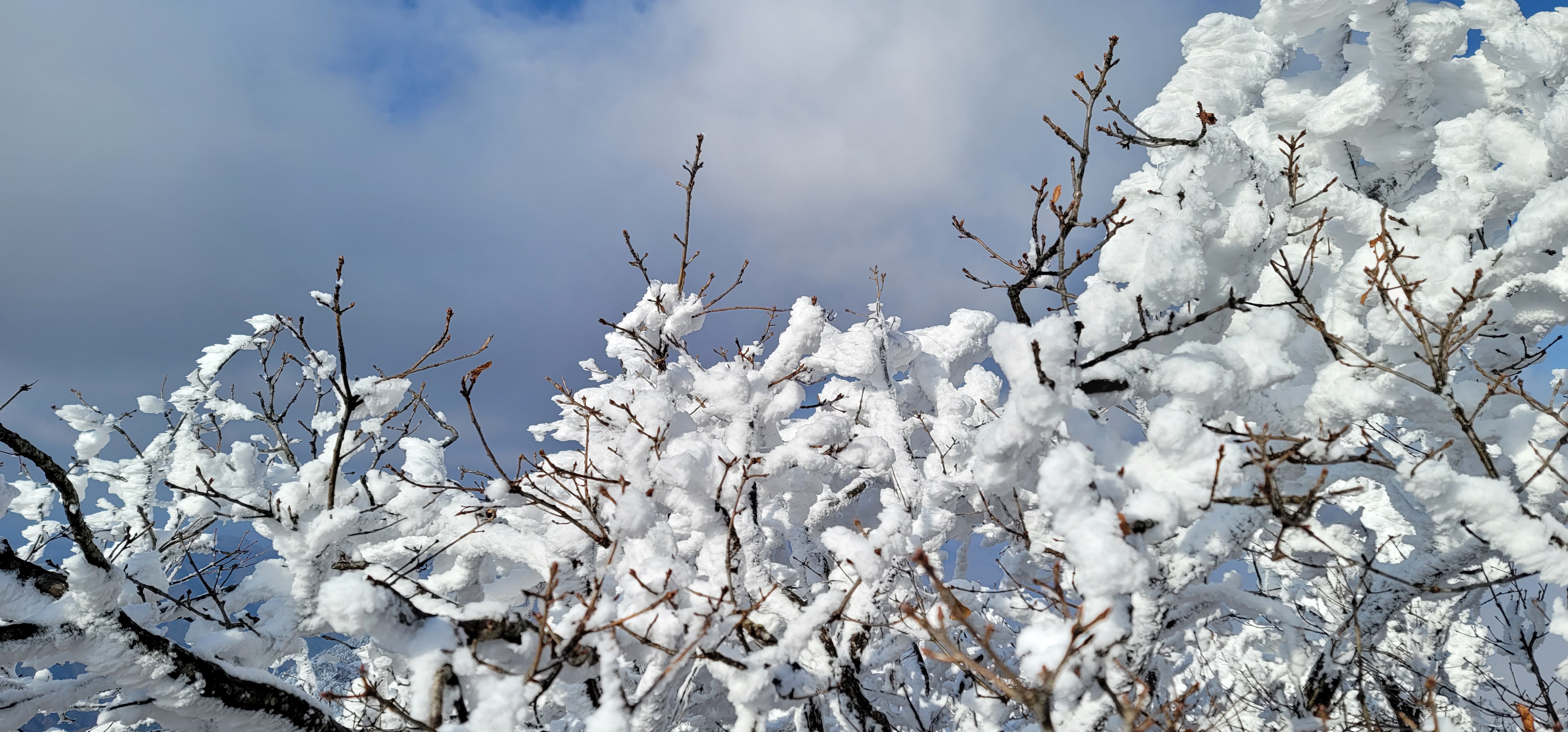 눈꽃사이로 펼쳐진 하늘과 구름이 만들어낸 풍경은 참 멋있다.