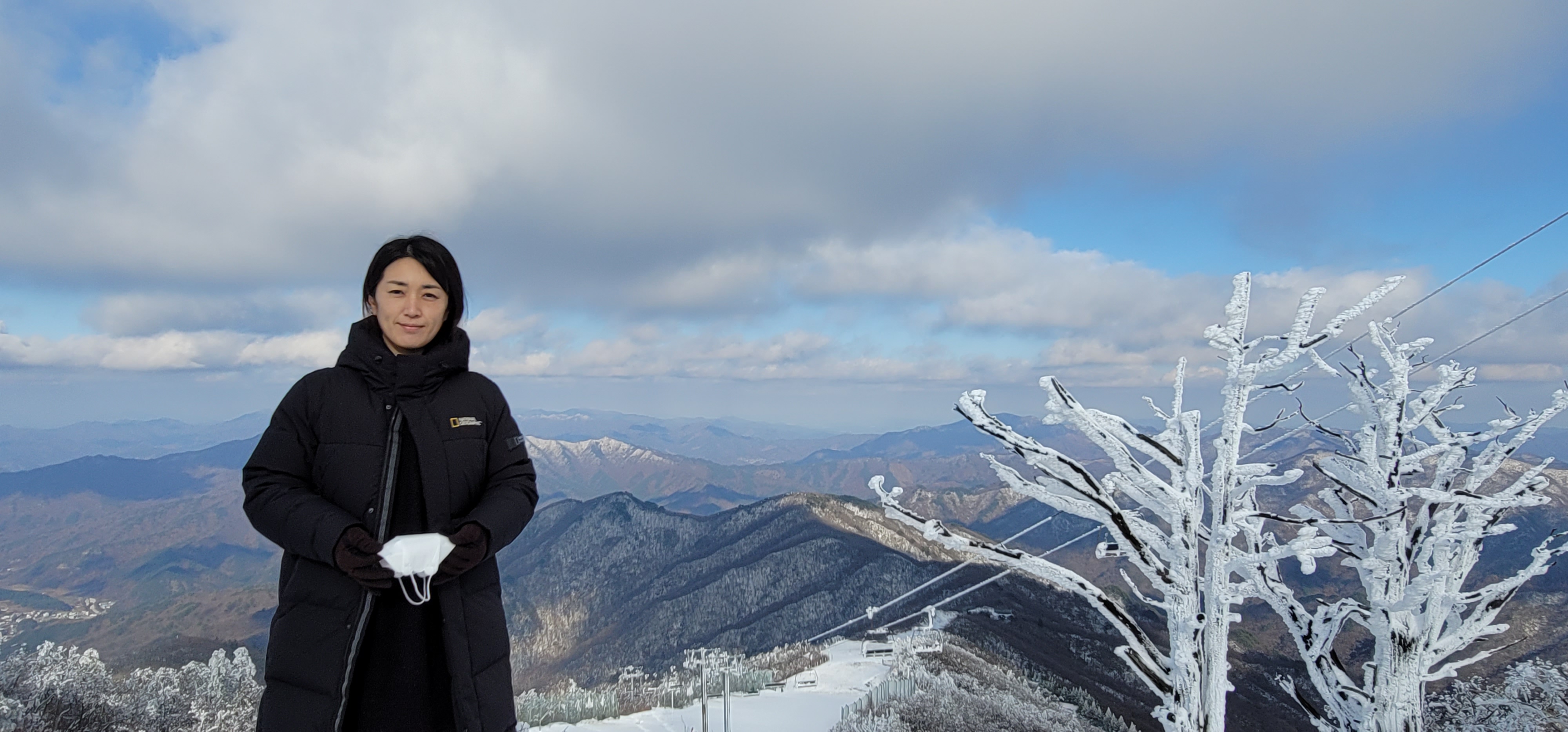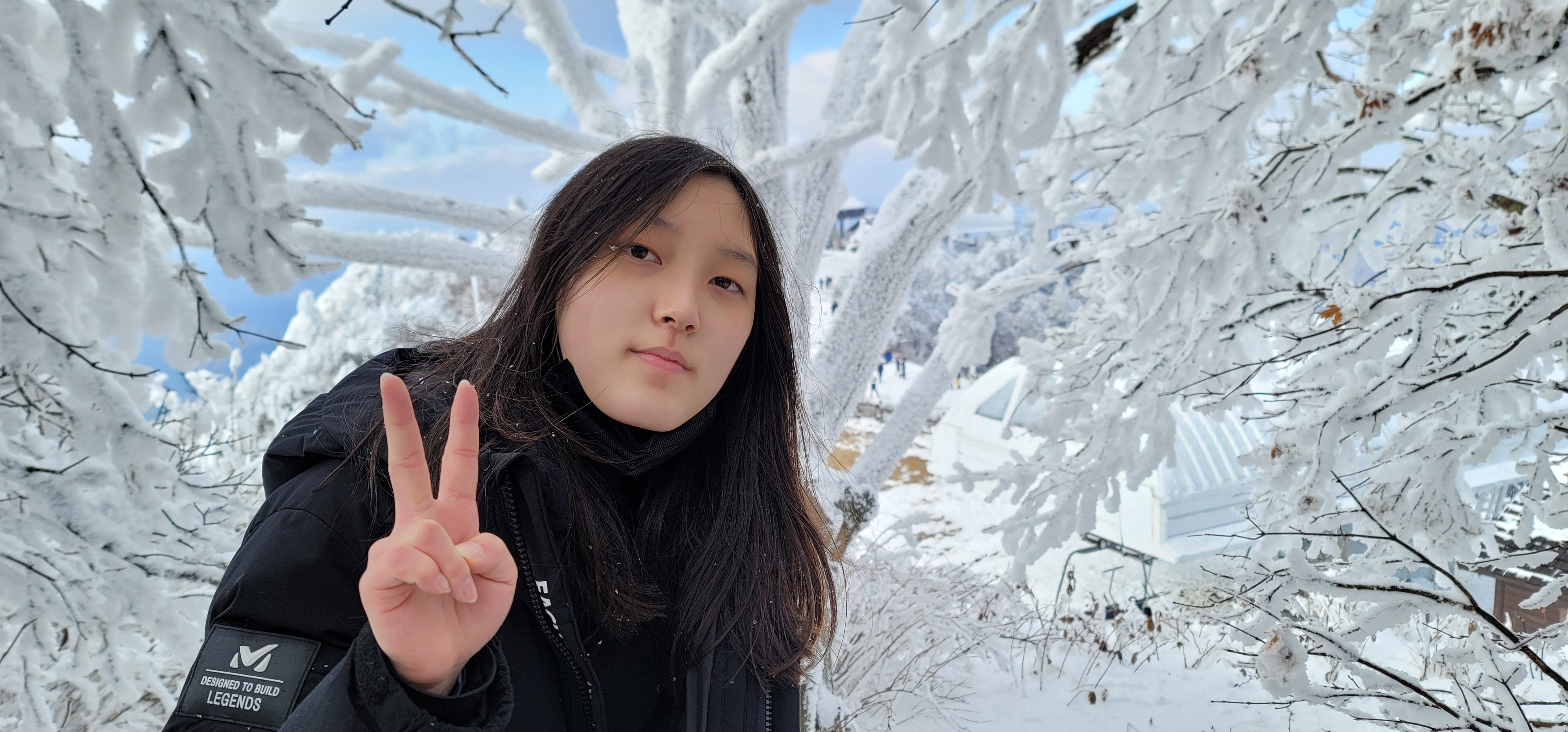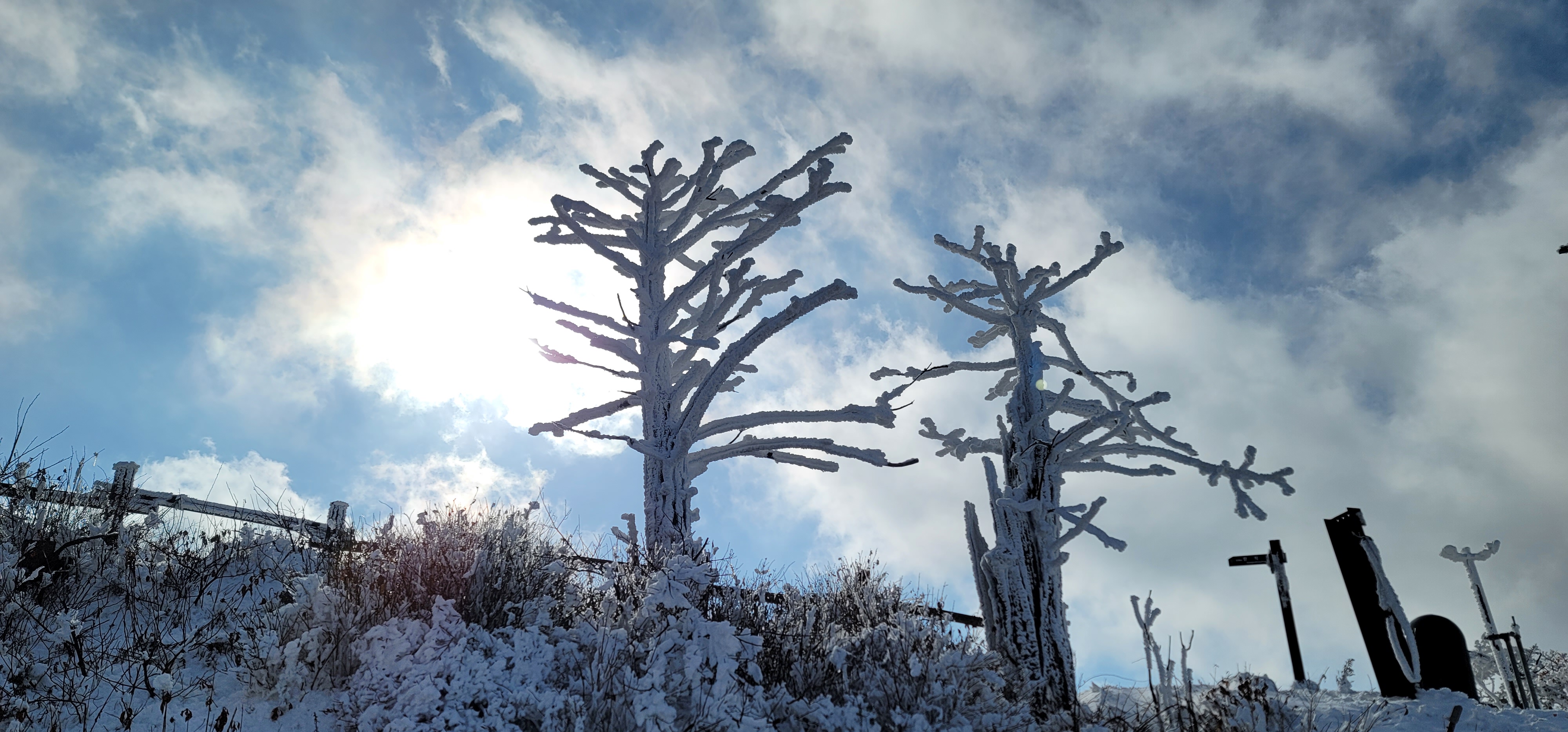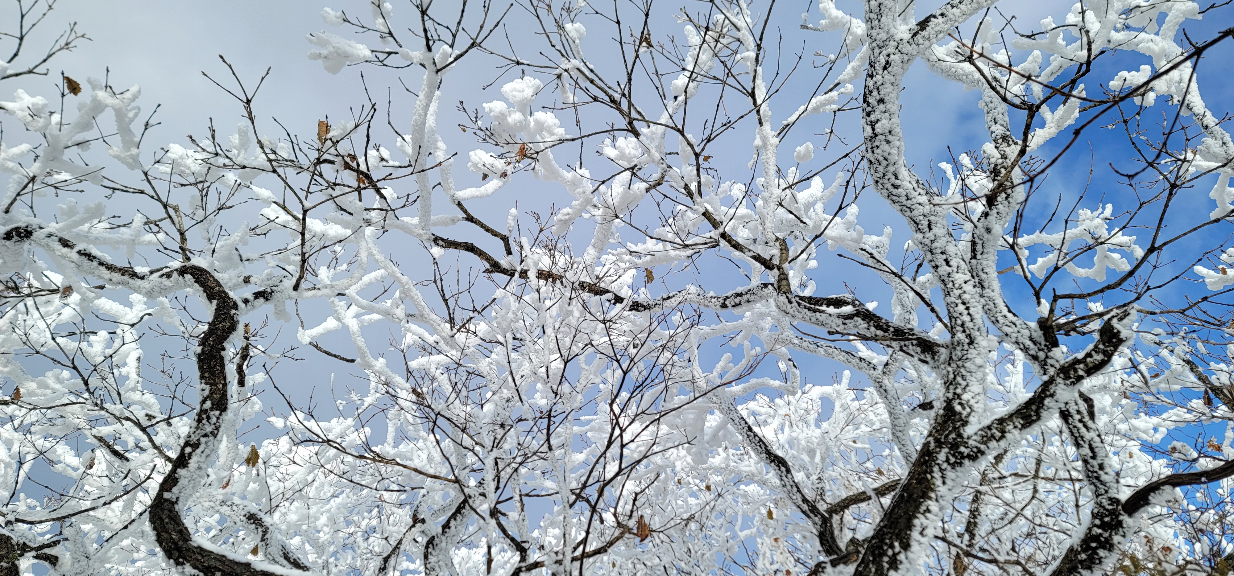 눈꽃사이로 펼쳐진 하늘과 구름이 만들어낸 풍경은 참 멋있다.