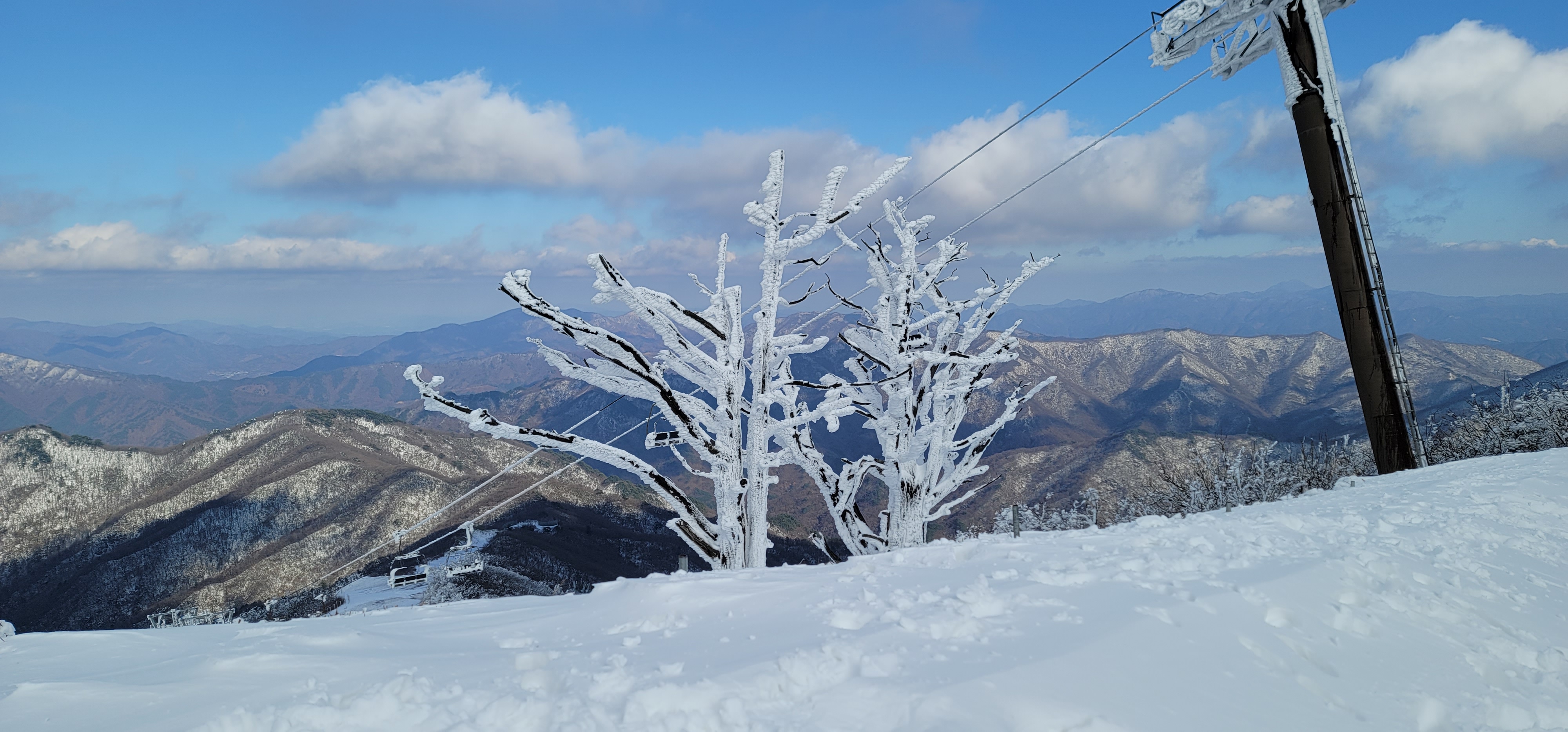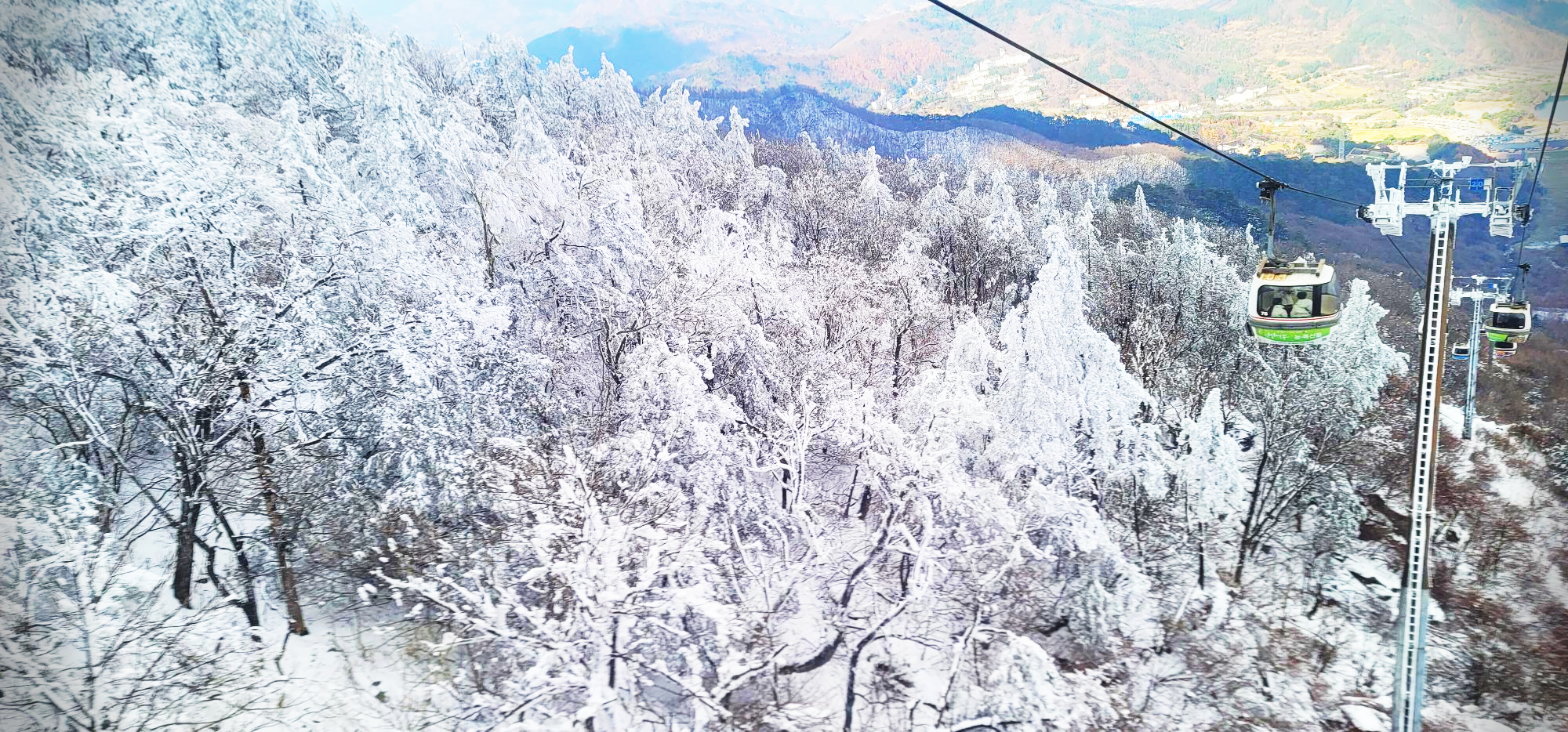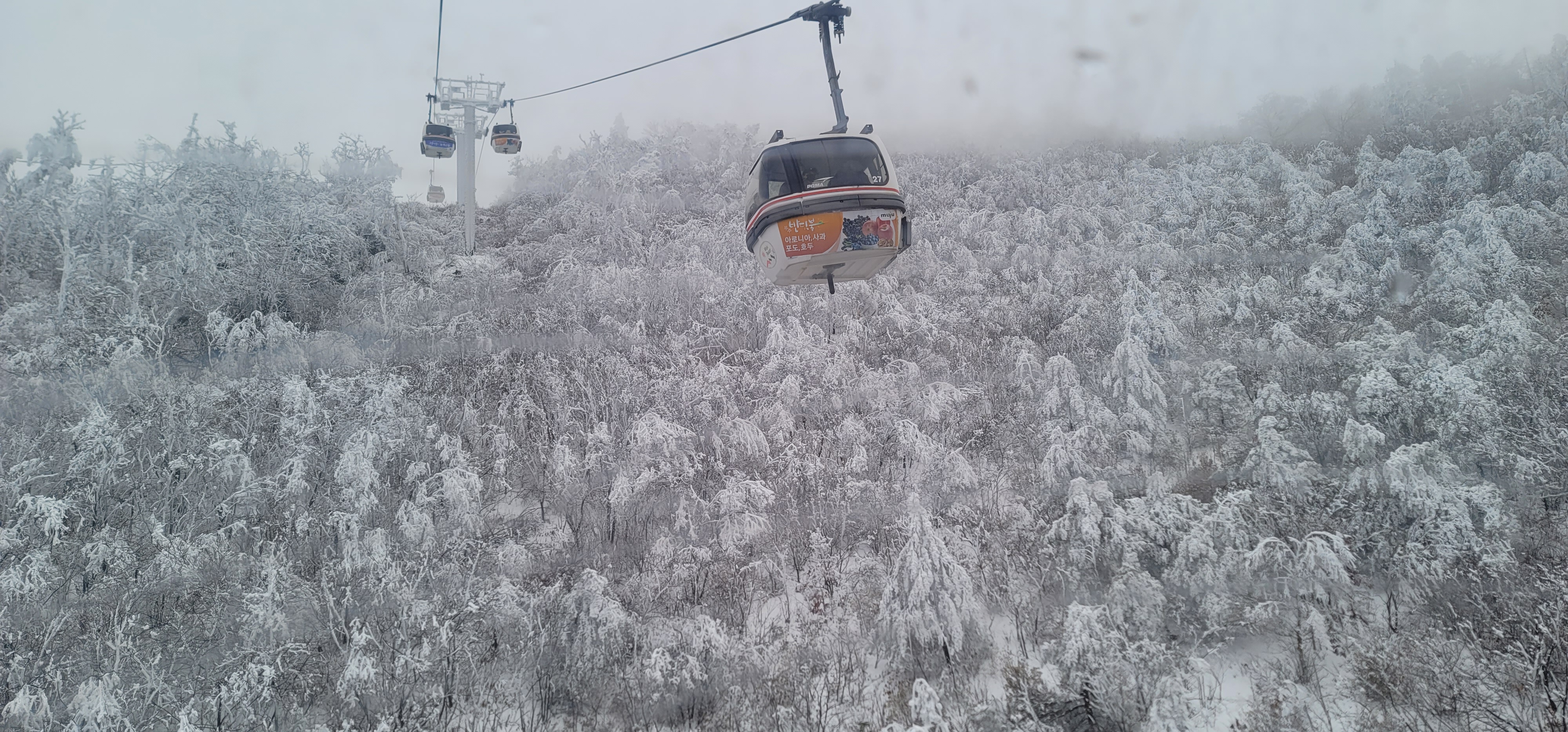 곤도라를 타고 정상부근으로 갈수록 하얀 파우더를 뿌려놓은것 마냥 온통 눈천지다.