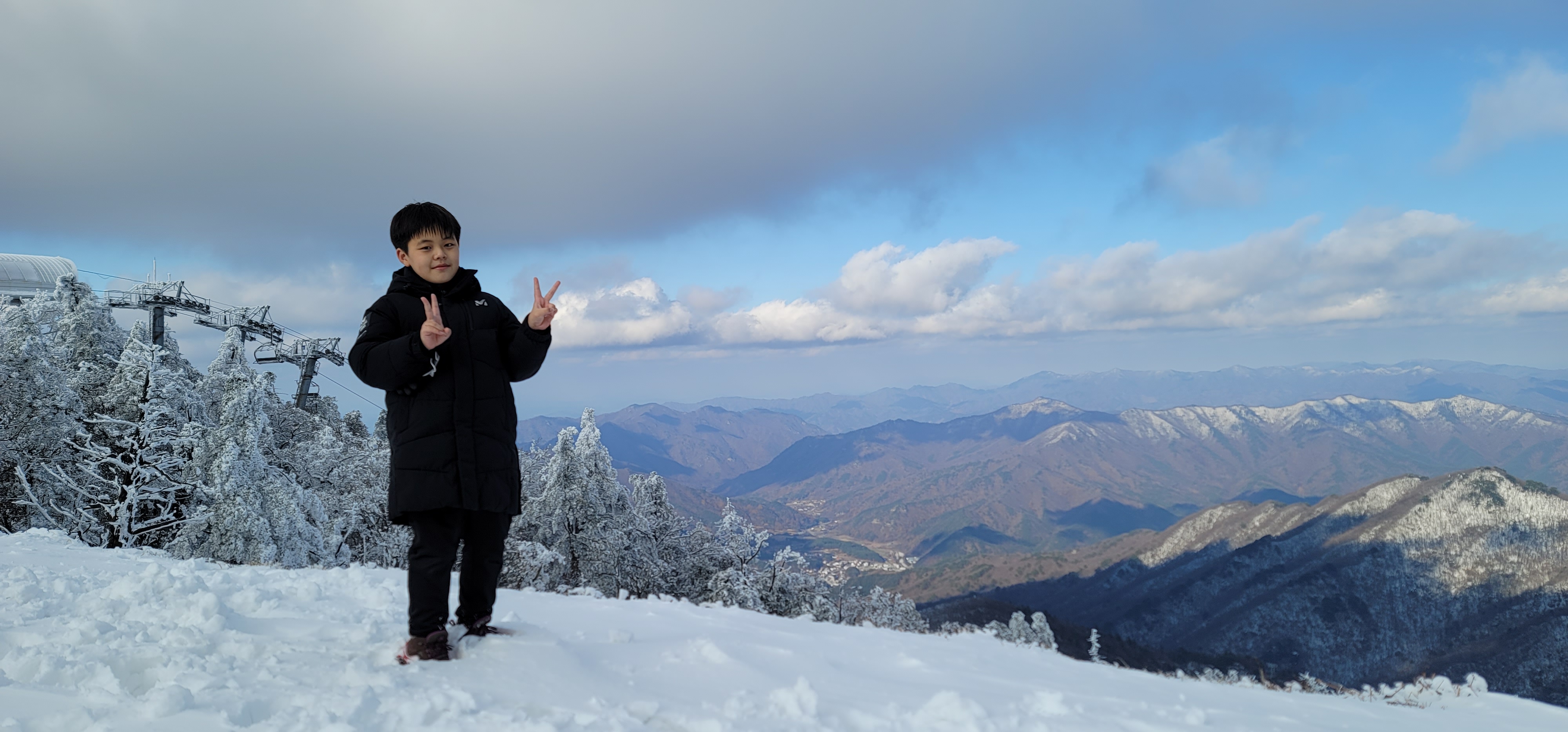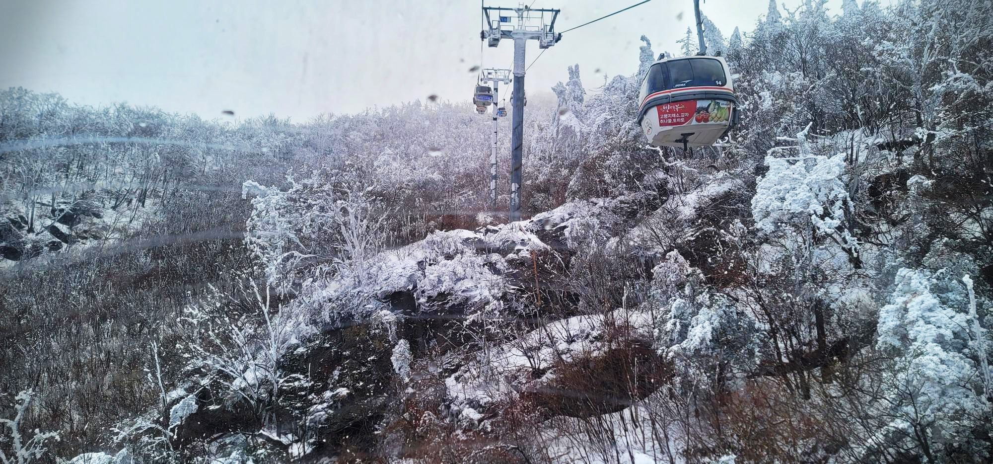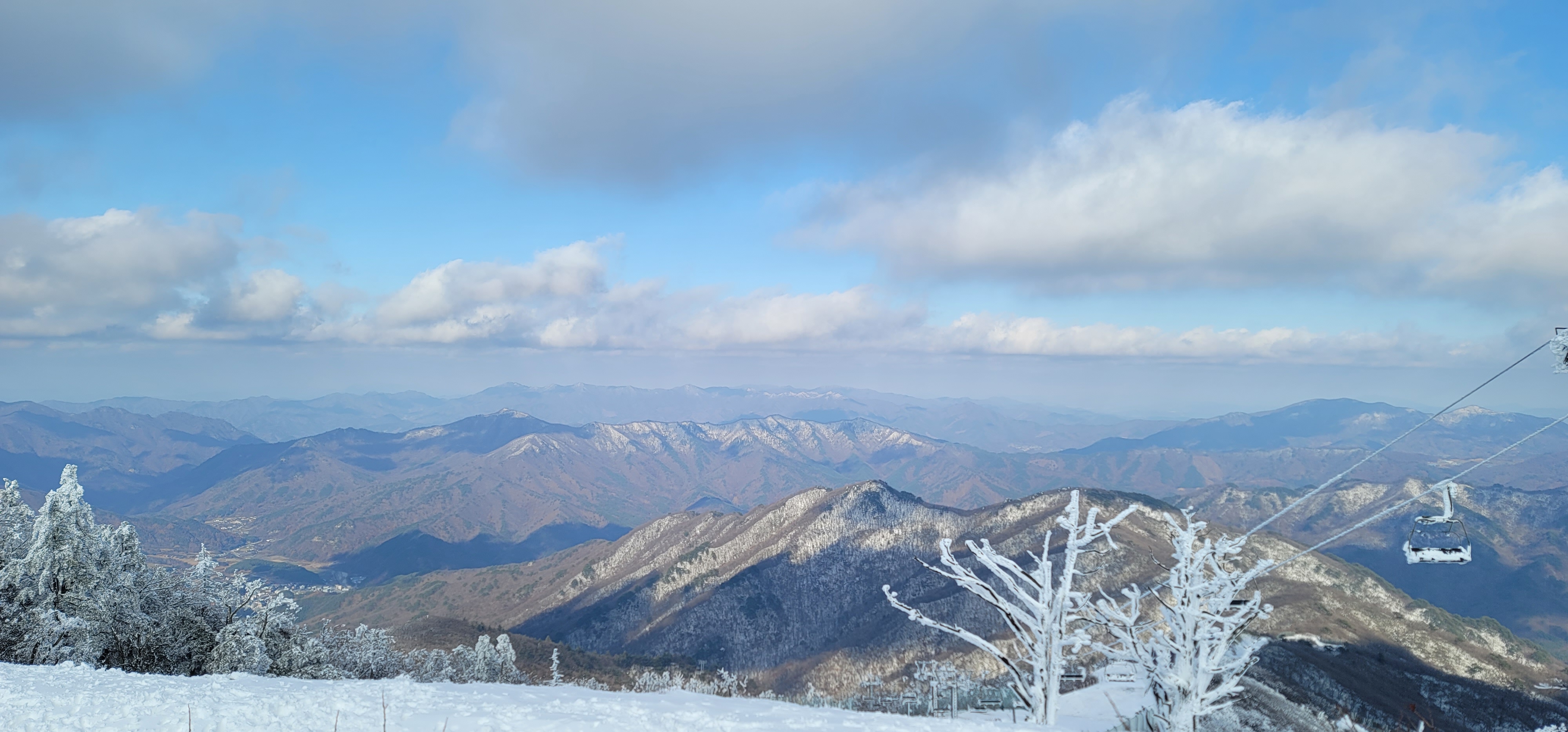 곤도라를 타고 정상부근으로 갈수록 하얀 파우더를 뿌려놓은것 마냥 온통 눈천지다.