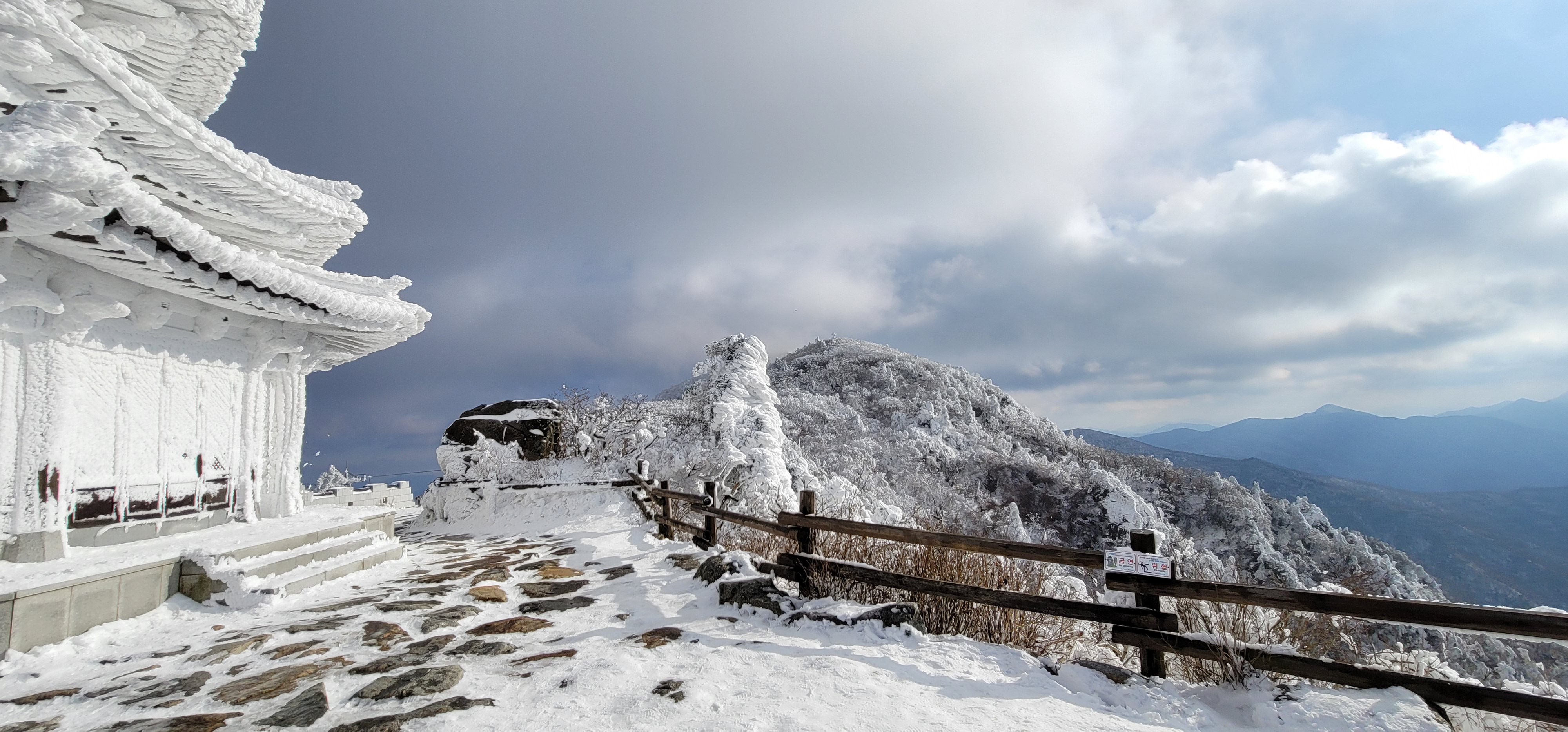 구름과 눈꽃이 어우러진 풍경이 참 장관이다.