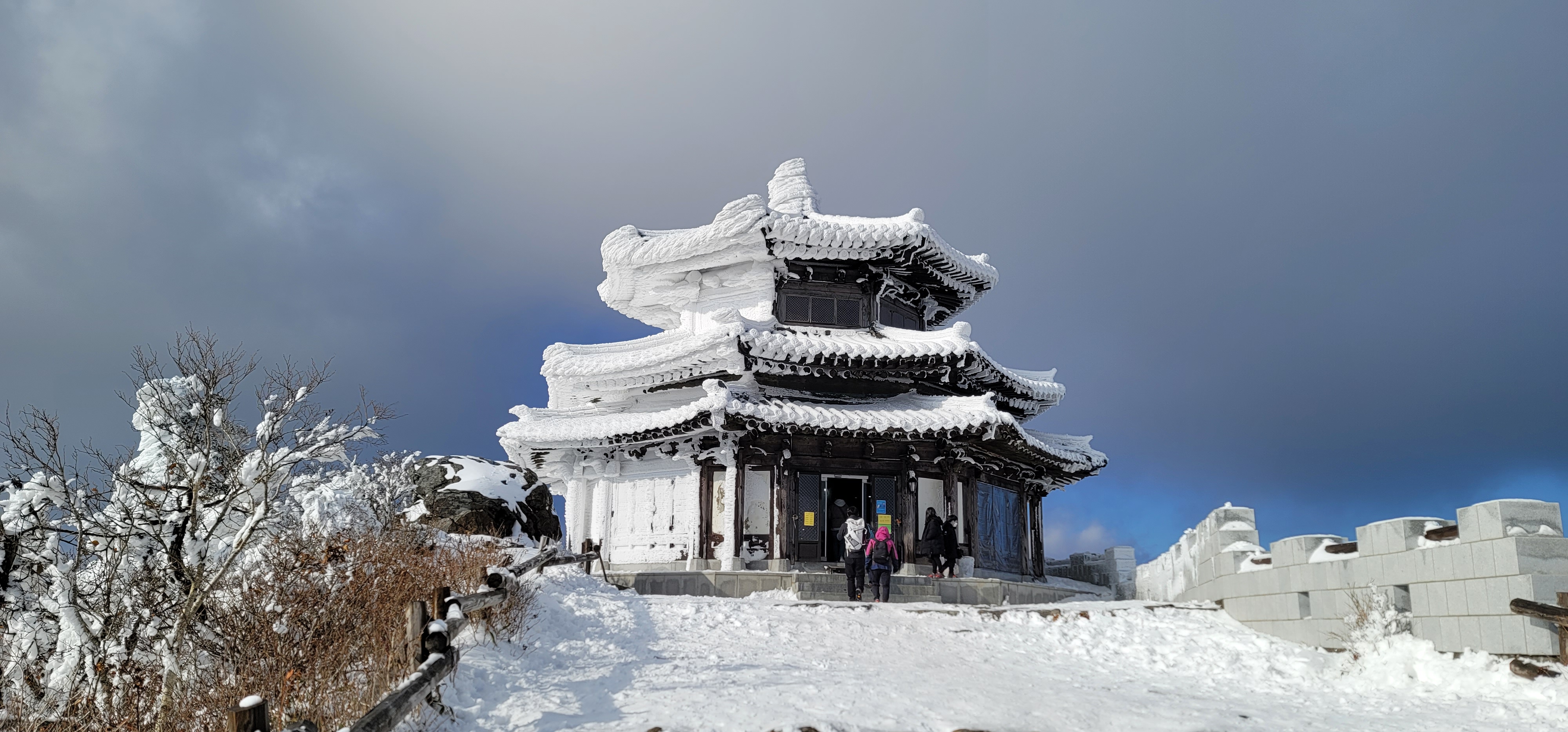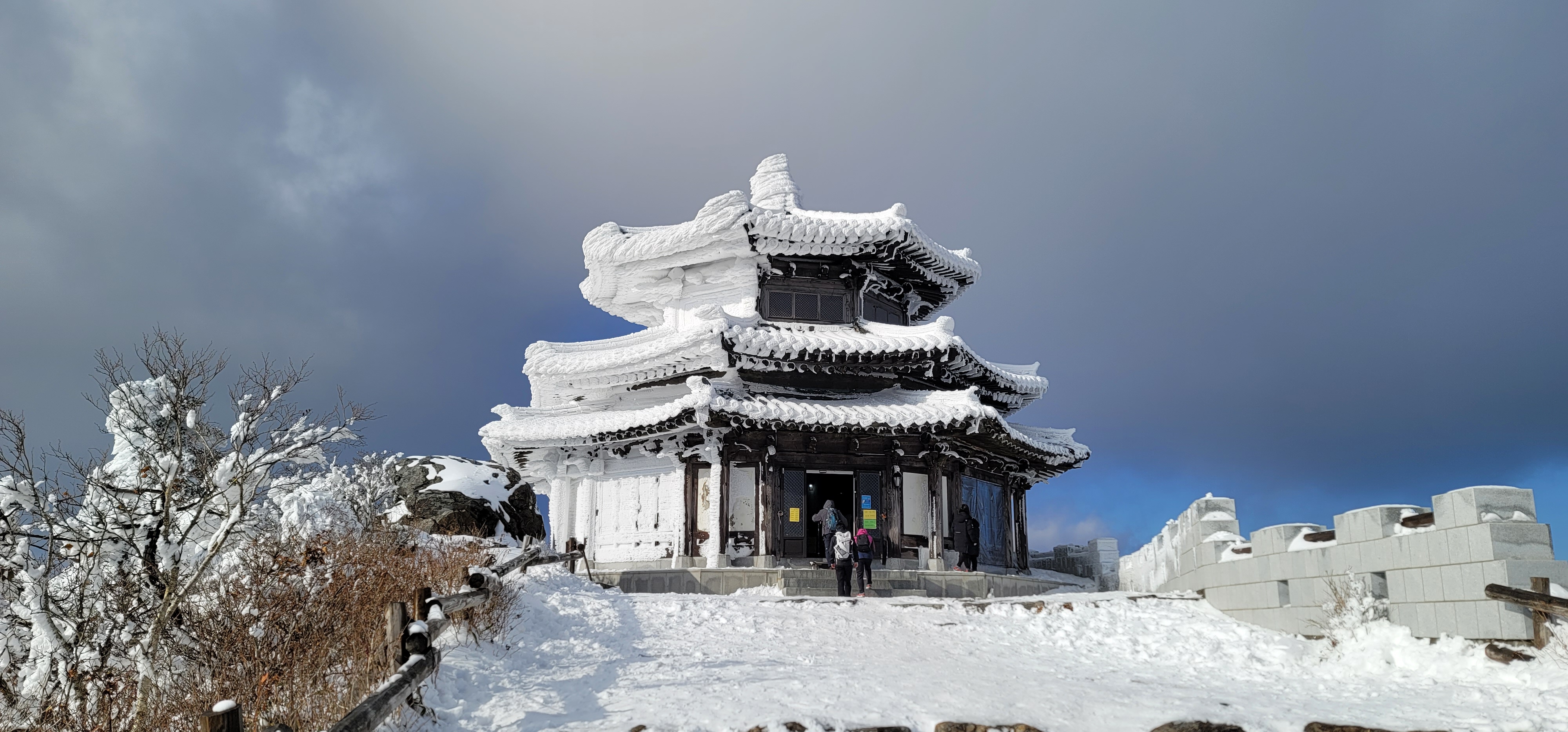 정상 부근의 바위들도 눈으로 덮여서 장관을 이룬다.