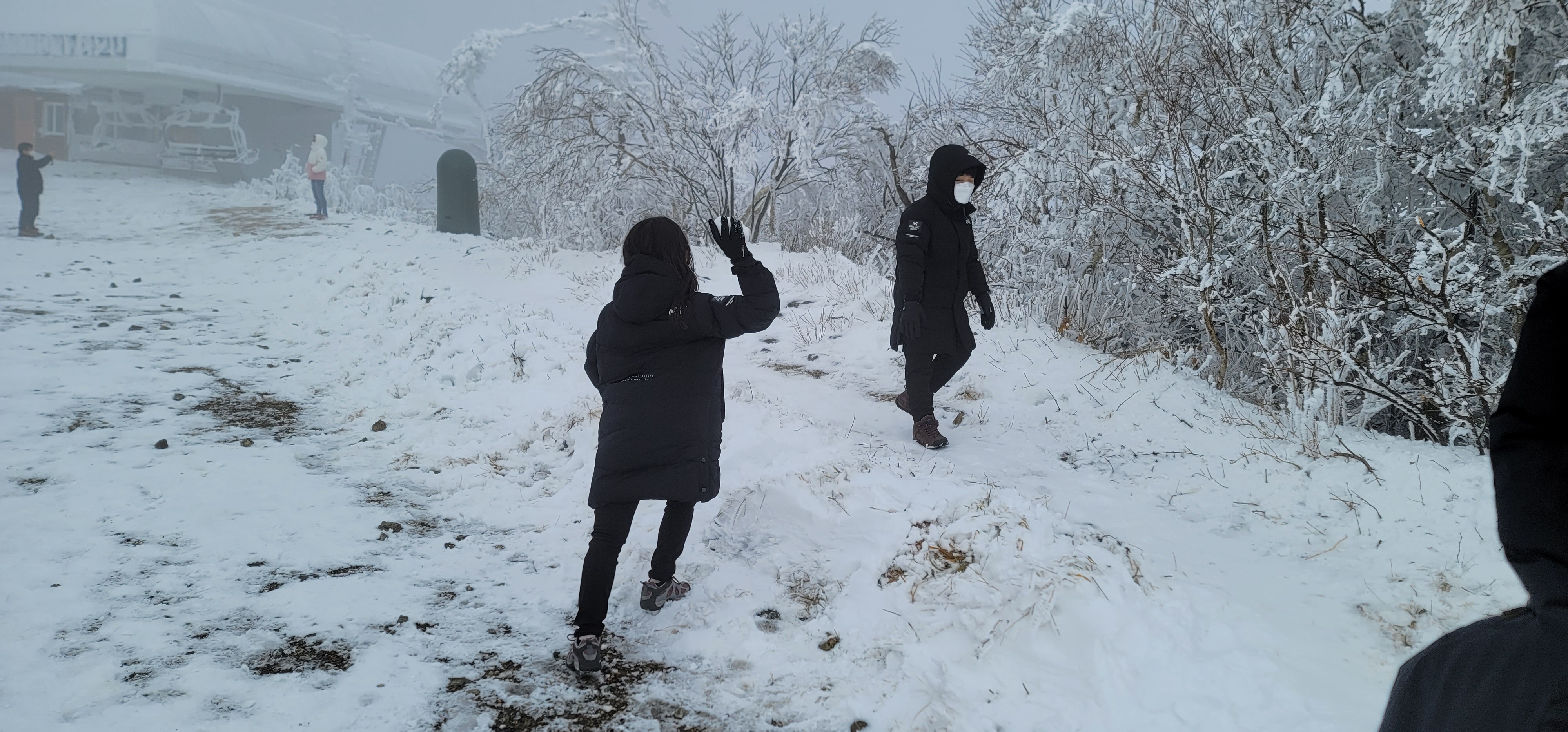 설천봉에서 이미 많은 사람들이 사진도 찍으면서 이른 눈을 맘껏 즐기고 있다.