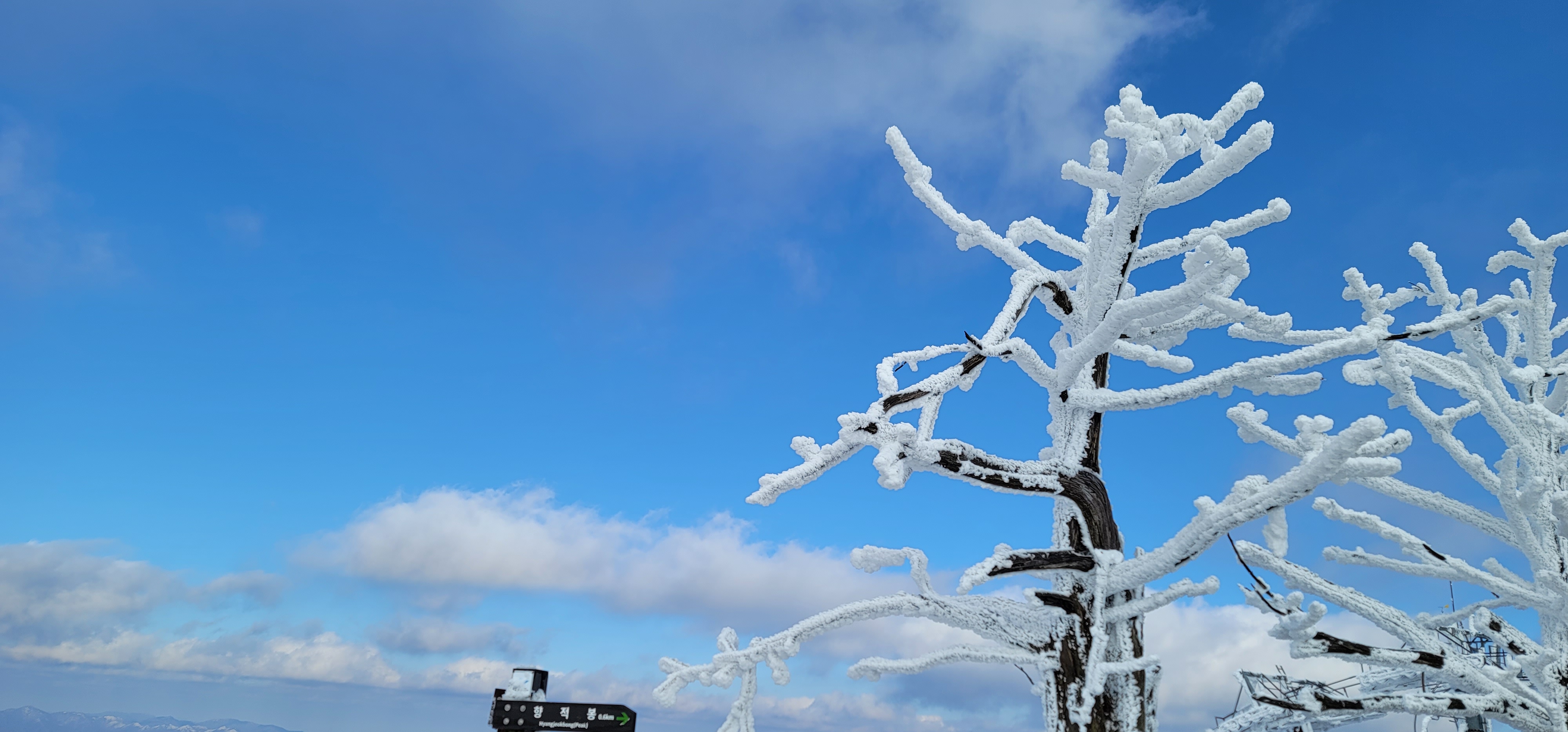 파란 하늘과 눈꽃의 조화가 참 대조적이면서도 멋진 풍경을 만들어 낸다.
