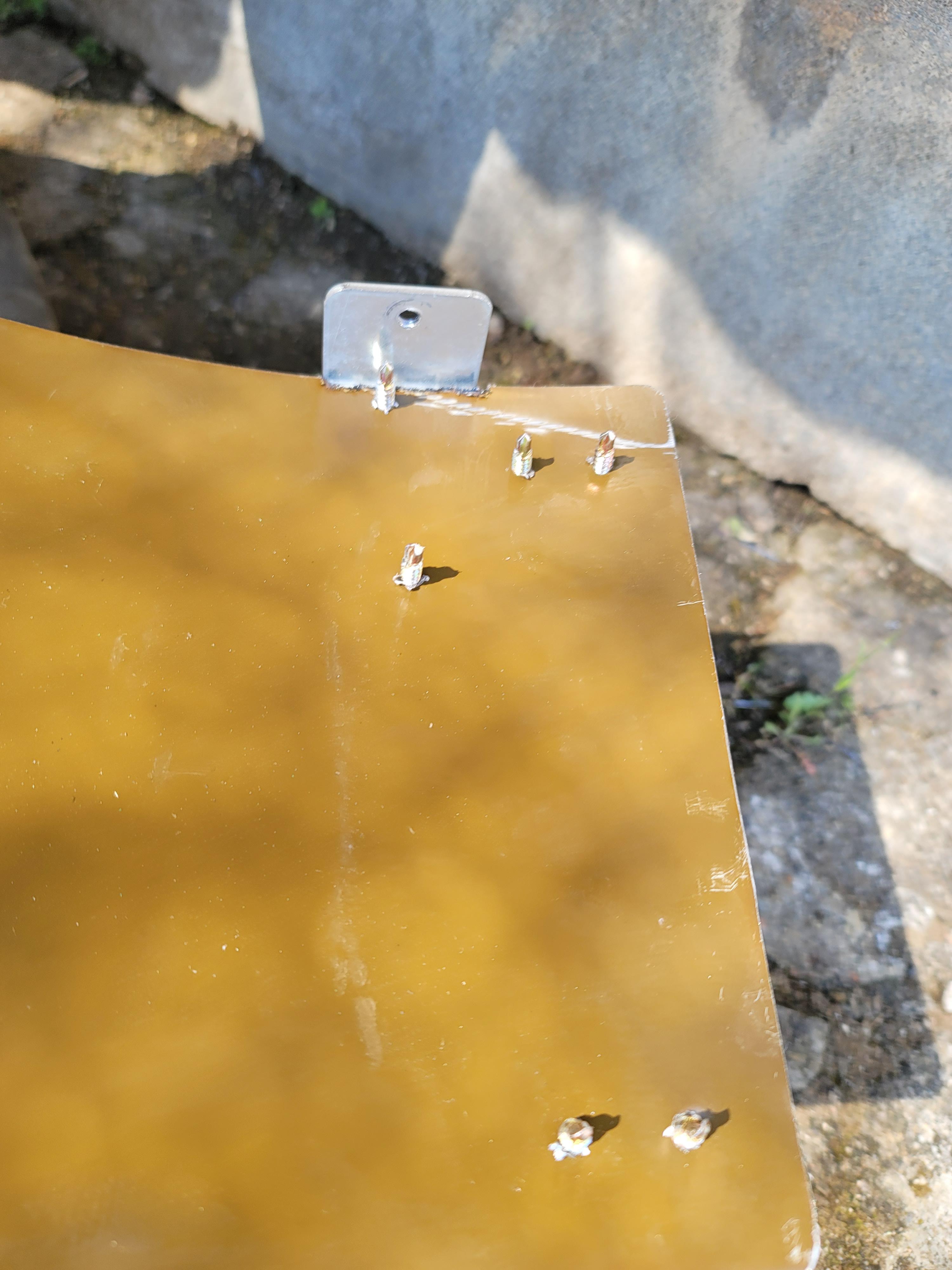 여기도 뚜껑판이 아래로 들어가지 못하도록 ㄱ자 철재를 이용해서 용접해서 고정시켜주었다.