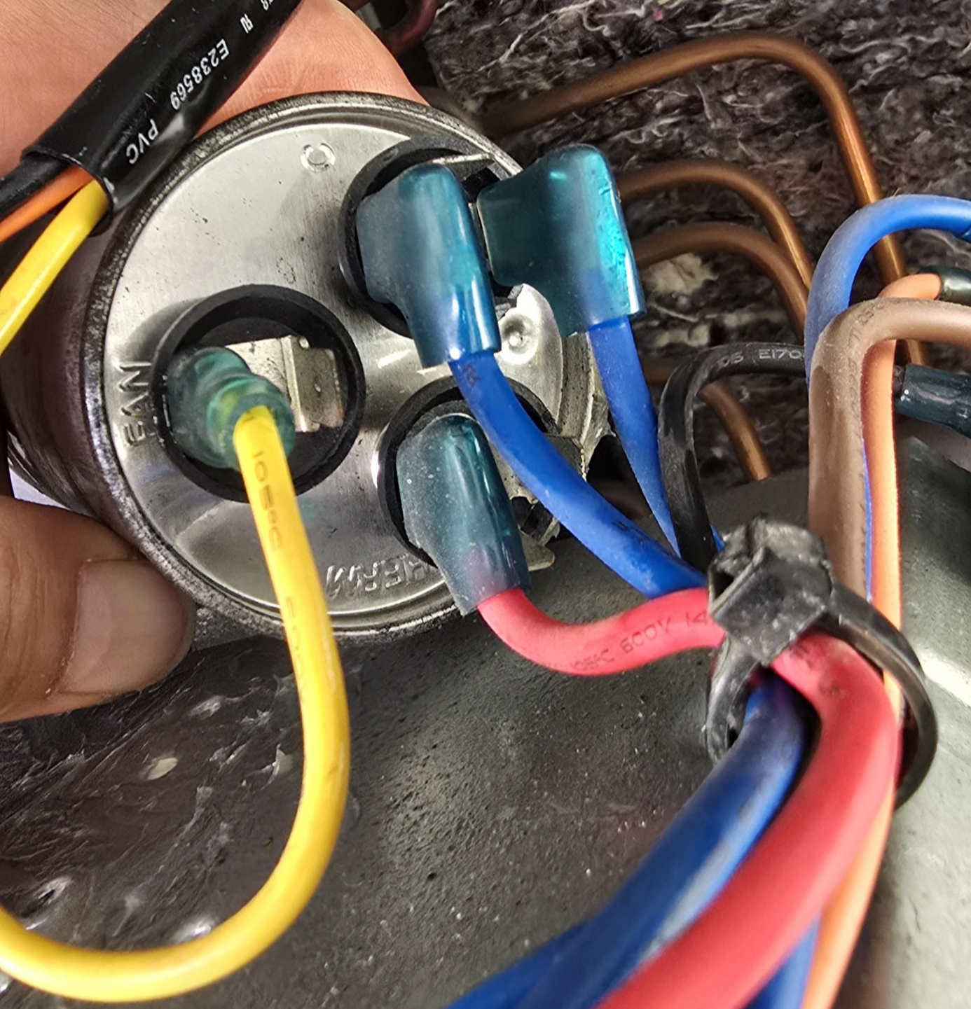 위 사진 오른쪽 상단이 기동 콘덴서 위치이다.
