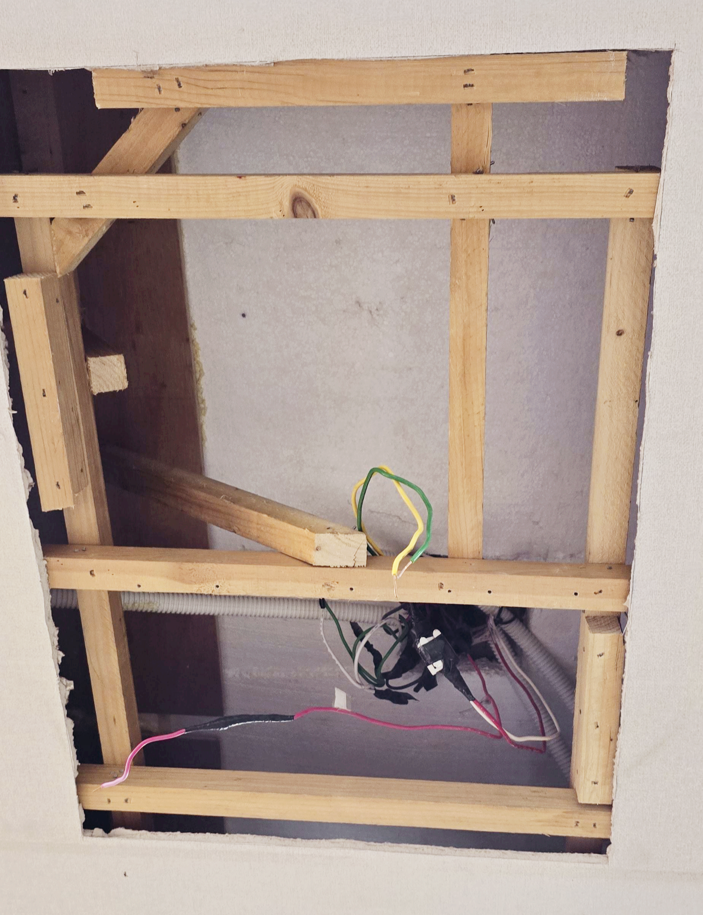 쉽게말해 석고보드를 고정하려고 천정에 설치해둔 각목이 있다.