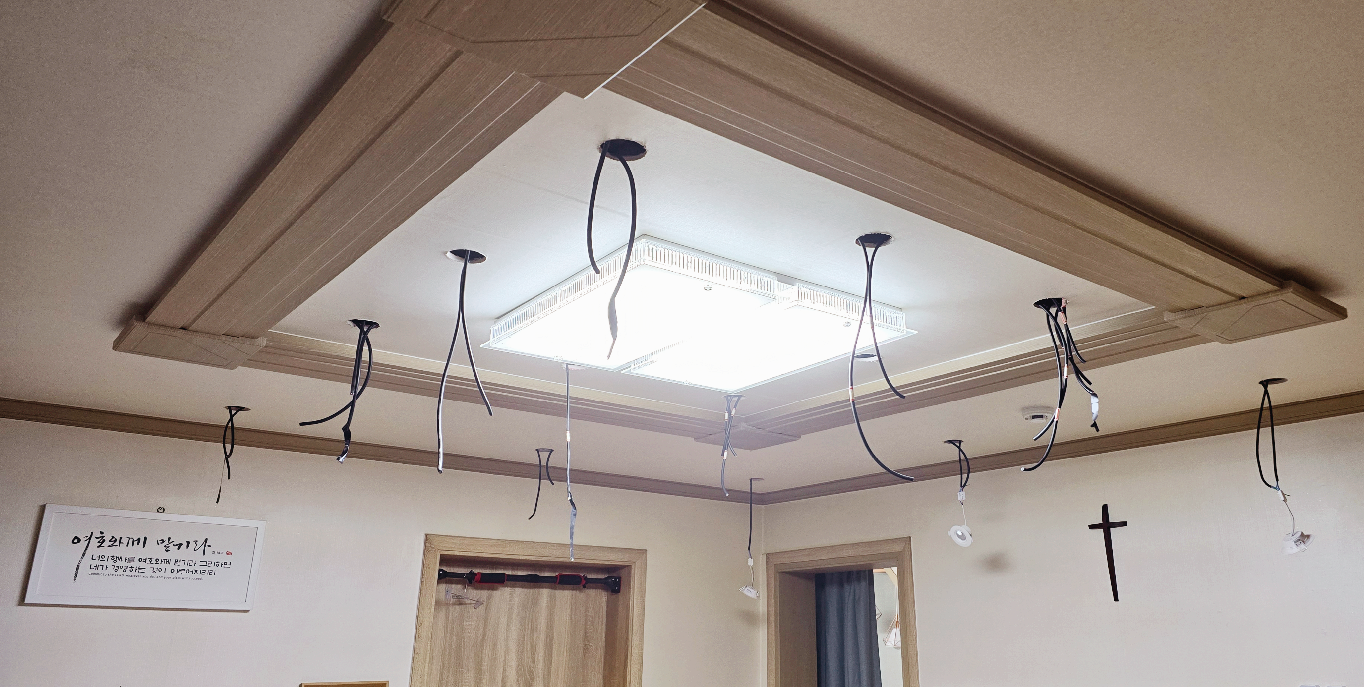 도배작업이 필요하지만 중앙 전등 재배치가 필요하기에 명절이 끝나고 나중에 시간내서 작업하기로 한다.